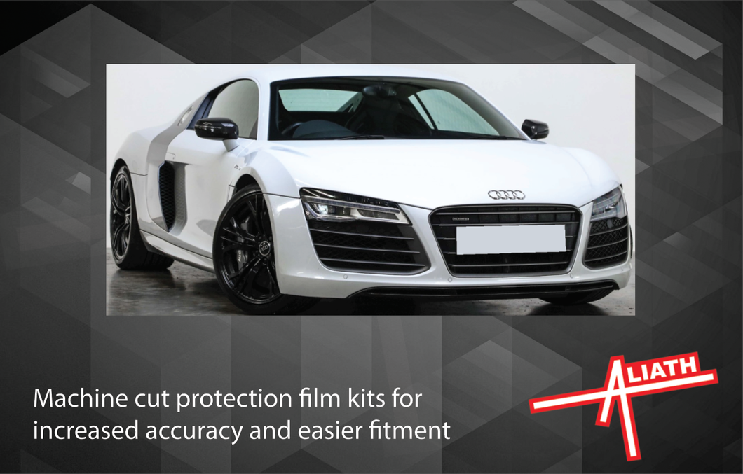 Audi R8 Mk1 (Type 42 Facelift) 2011-2015, Side sill skirt and QTR arch panels CLEAR / TRANSPARENT stone chip guard paint protection film set.