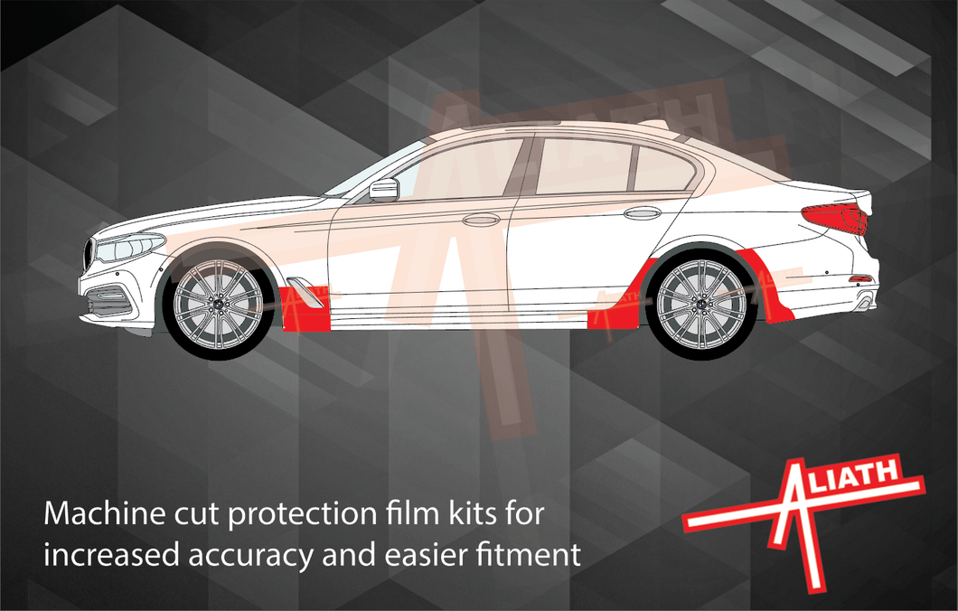 BMW 5-Series M-sport Saloon (Type G30) 2017-Present, Front & Rear arches CLEAR / TRANSPARENT scratch chip guard paint protection film set.