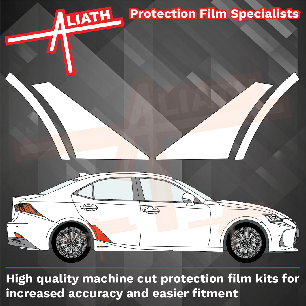 Lexus IS 2013-2019, Rear QTR & door lower arch sections CLEAR / TRANSPARENT stone chip guard paint protection film set.