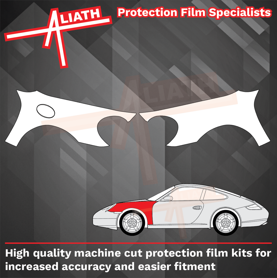 Porsche 911 (997) 2005-2012, Front Wings CLEAR / TRANSPARENT stone chip guard paint protection film set.