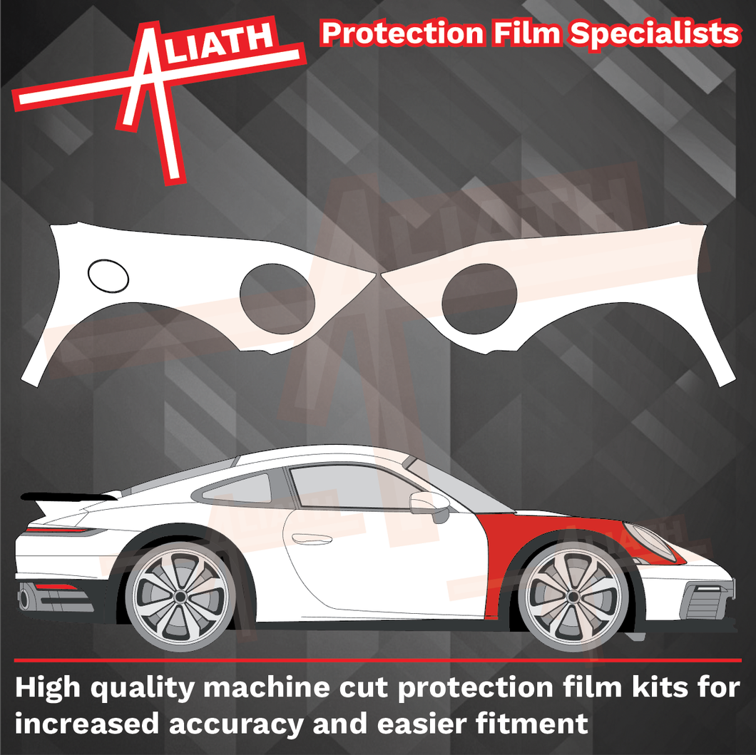 Porsche 911 DAKAR (992) 2020-Present, Front wings CLEAR / TRANSPARENT stone chip guard paint protection film set.