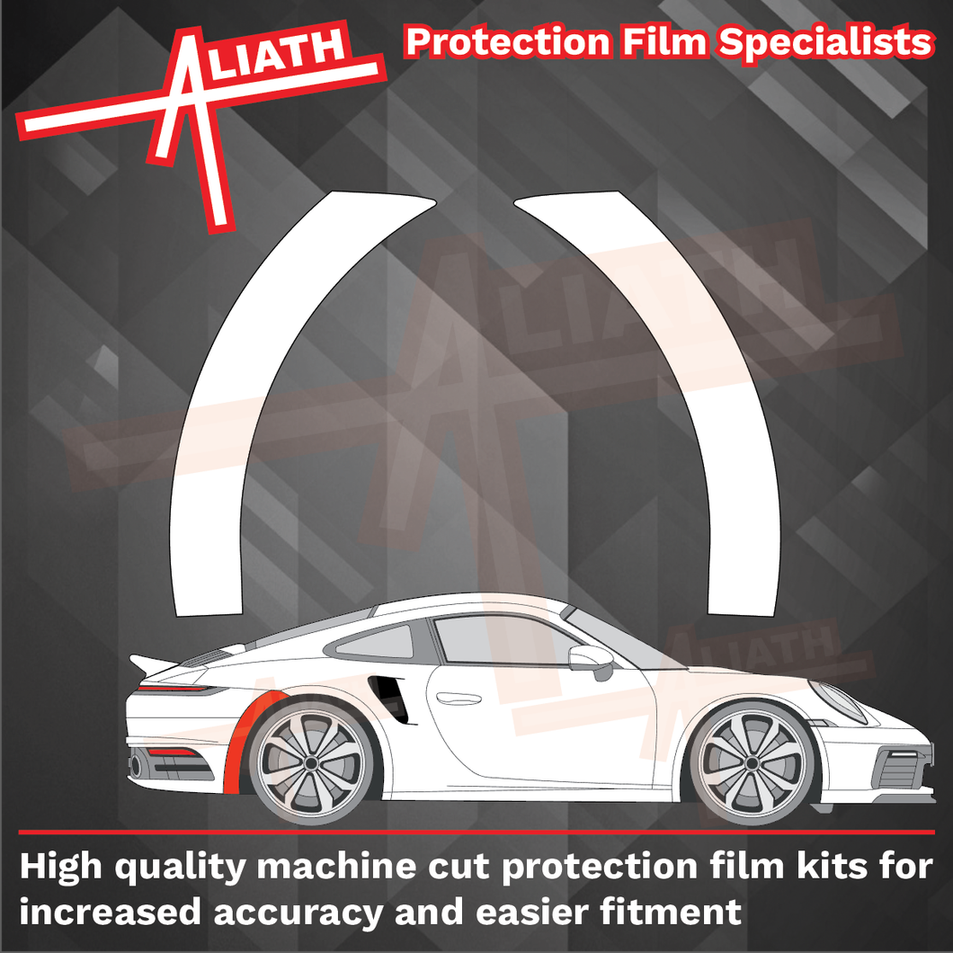 Porsche 911 Turbo & Turbo S (992) 2020-Present, Rear bumper side arches CLEAR / TRANSPARENT stone chip guard paint protection film set.