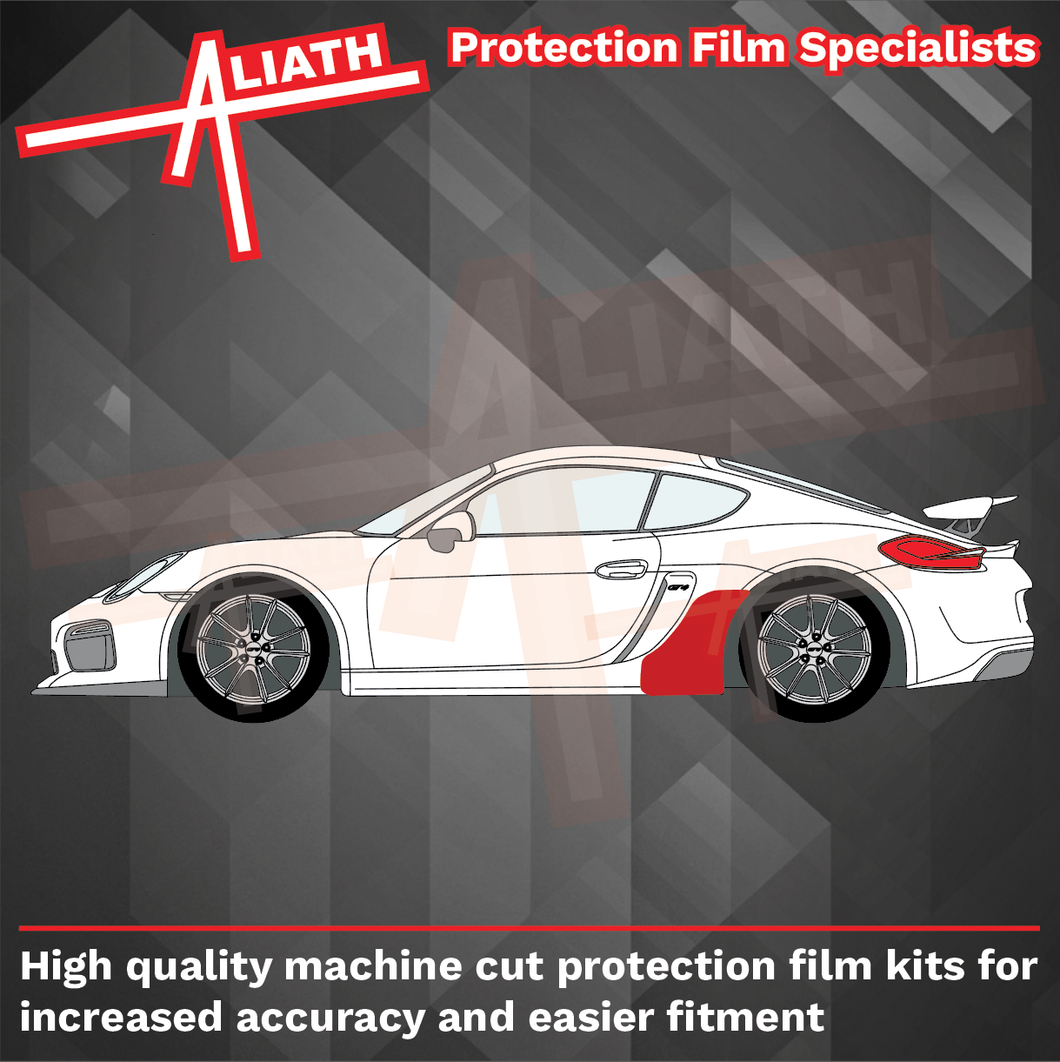 Porsche Cayman GT4 (Type 981) 2012-2016, Rear Sill Skirt arches BLACK TEXTURED stone chip guard paint protection film set.