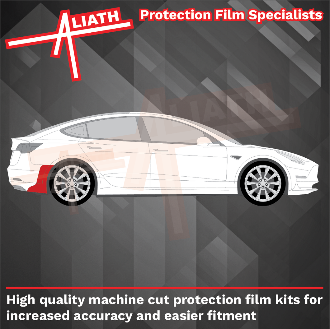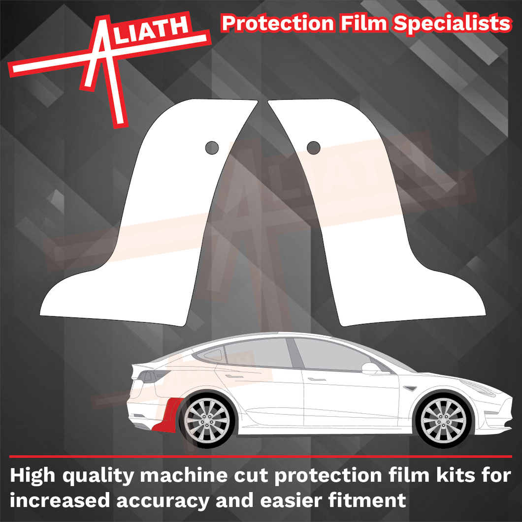 Tesla Model 3 2017-2024, Rear bumper side arches CLEAR / TRANSPARENT stone chip guard paint protection film set.