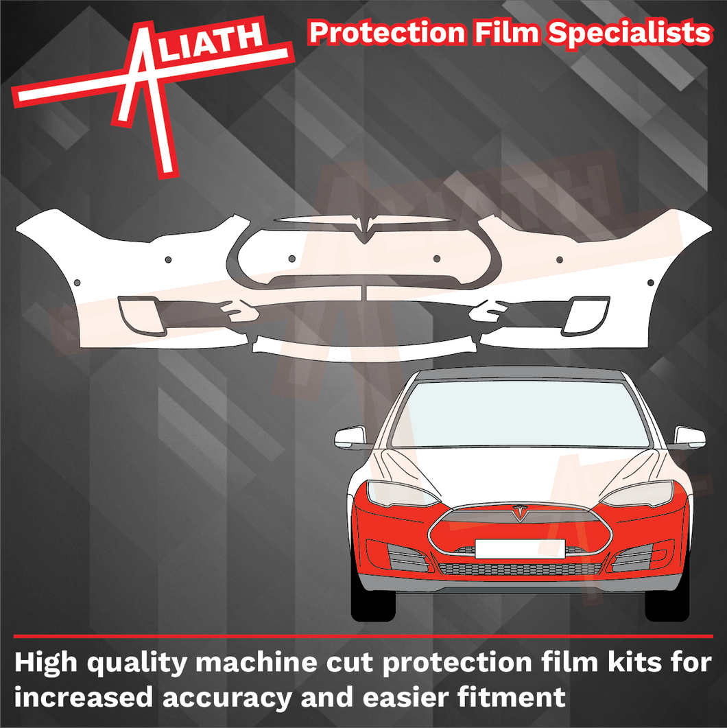 Tesla Model S 2012-2016, Front bumper CLEAR / TRANSPARENT stone chip guard paint protection film set.