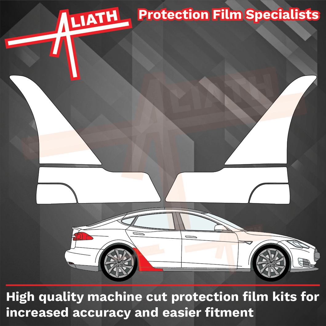 Tesla Model S 2012-2021, Rear QTR / Wing & Skirt arches CLEAR / TRANSPARENT stone chip guard paint protection film set.