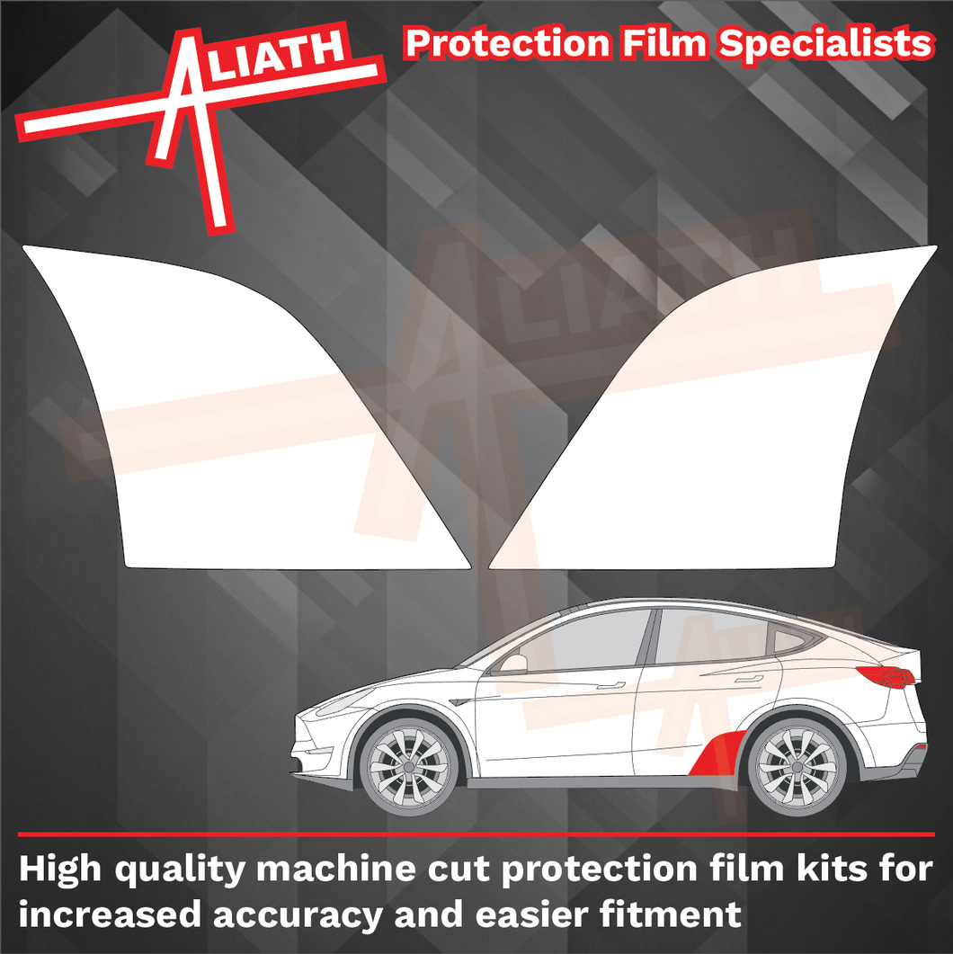 Tesla Model Y 2020-Present, Rear door arch sections OE style CLEAR / TRANSPARENT stone chip guard paint protection film set.